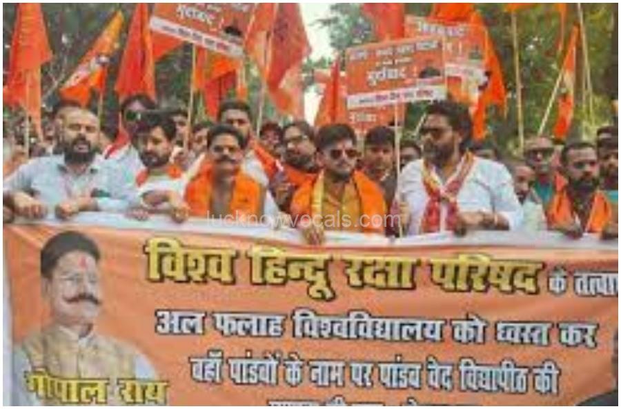 लखनऊ में विश्व हिंदू रक्षा परिषद (VHRP) ने अल-फलाह यूनिवर्सिटी के खिलाफ किया प्रदर्शन