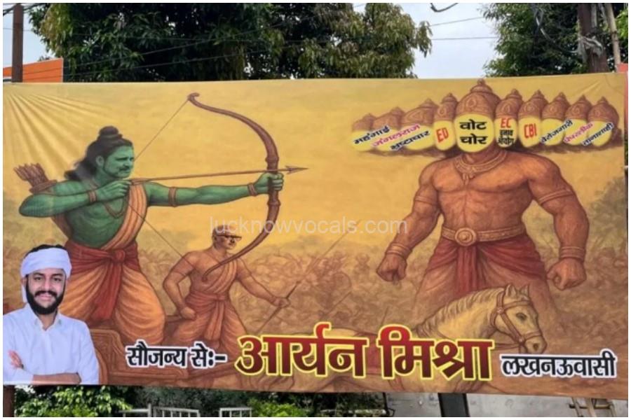 लखनऊ में कांग्रेस कार्यालय पर लगाया गया 10 सिर वाला रावण पोस्टर, राहुल गांधी बने भगवान राम