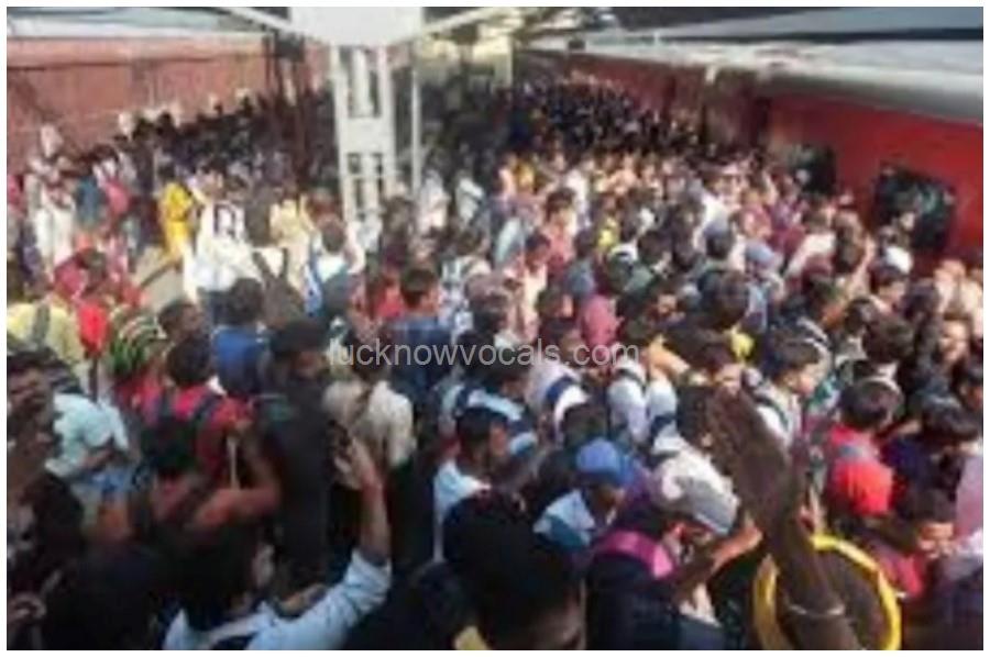 चारबाग रेलवे स्टेशन पर दीपावली की भीड़, ट्रेनों में ठसाठस यात्रियों से खचाखच भरे डिब्बे